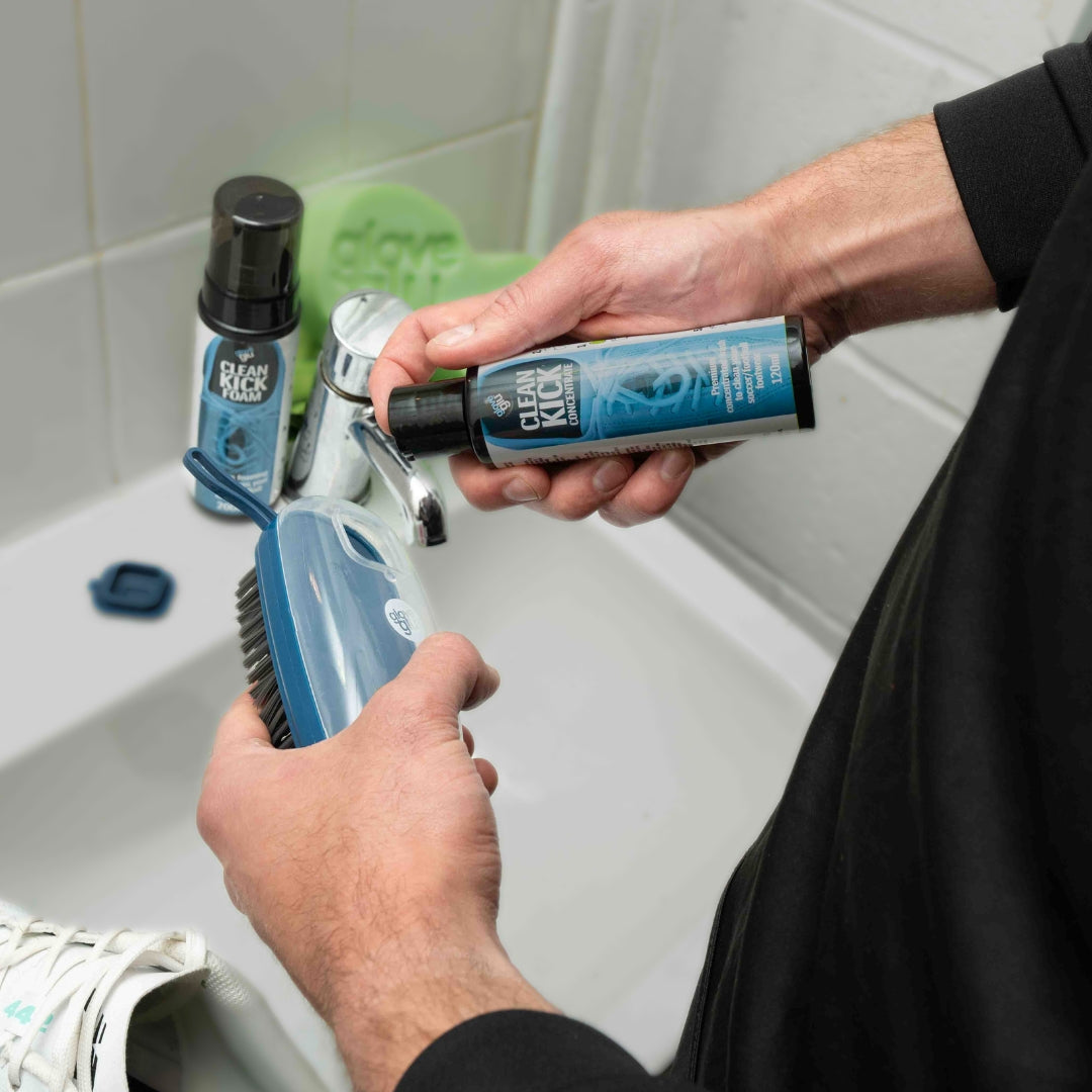 Add Clean Kick Concentrate for extra dirty boots, dried-on stains and to remove mud from your studs/moulds. Perfect for a deep clean.
