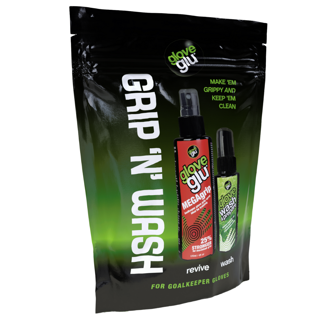 This bundle contains gloveglu MEGAgrip which is our strongest grip spray to revive your gloves that have lost their grip, or add ultimate grip to newer gloves. As well as Glove Wash & Prepare which thanks to it's unique formula, lifts dirt from the latex of goalkeeper gloves.
